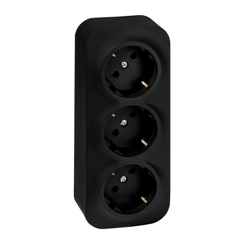 Розетка 3-м ОП Quteo 16А IP20 250В 3х2P+E с заземл. защ. шторки черн. матов. IEK 782473