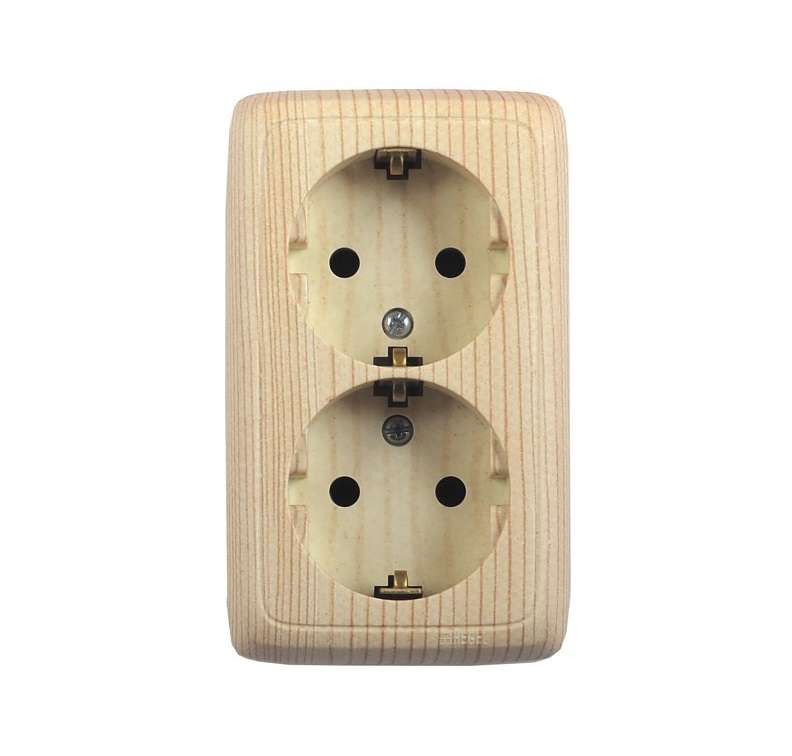Розетка 2-м ОП Альфа 16А IP20 250В с заземл. с изолир. пластиной сосна HEGEL РА16-153-02
