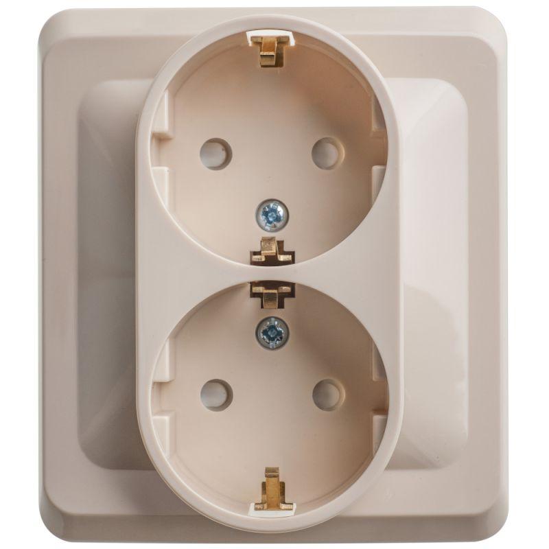 Розетка 2-м СП Этюд 16А IP20 250В с заземл. защ. шторки крем. SE PC16-008K