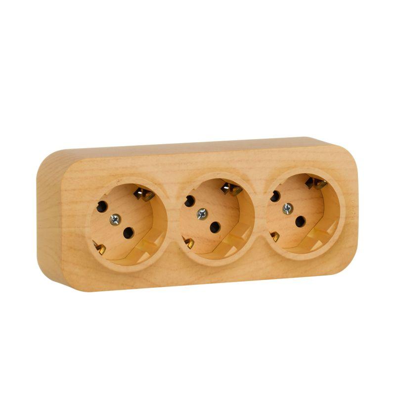 Розетка 3-м ОП Quteo 16А IP20 250В 3х2P+E с заземл. защ. шторки дерево IEK 782288