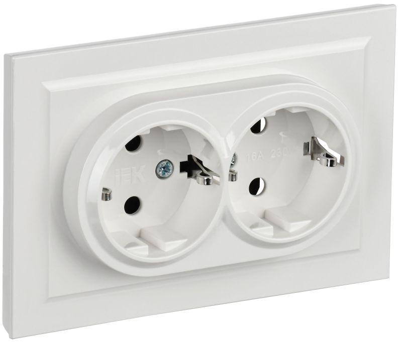 Розетка 2-м СП BRITE РСш12-3-БрБ 16А в сборе с заземл. защ. шторки бел. IEK BR-R24-16-K01-F-PRO