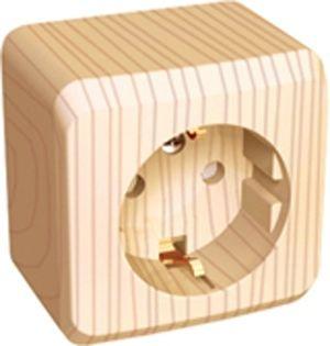 Розетка 1-м ОП Этюд Дача 16А IP20 250В с заземл. защ. шторки сосна SE PA16-004D