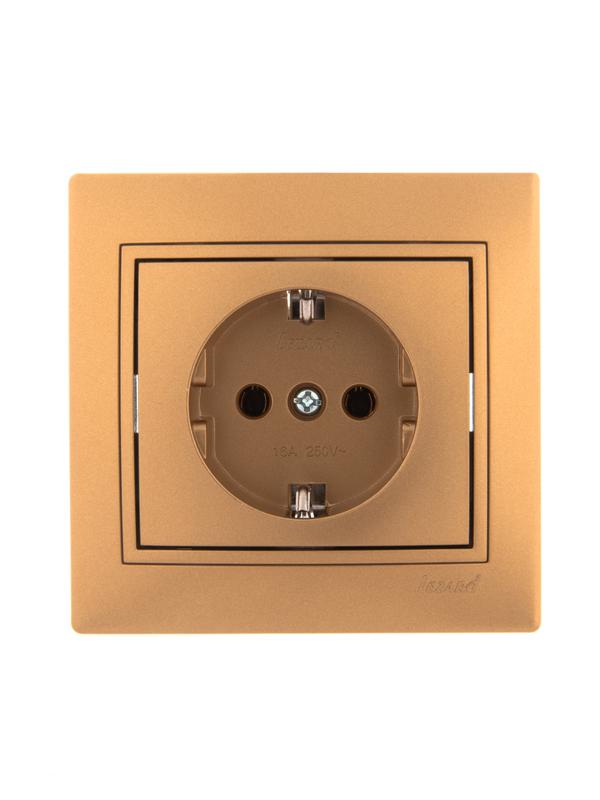 Розетка 1-м СП Mira 16А IP20 с заземл. со вставкой керамика зол. метал. LEZARD 701-1313-122