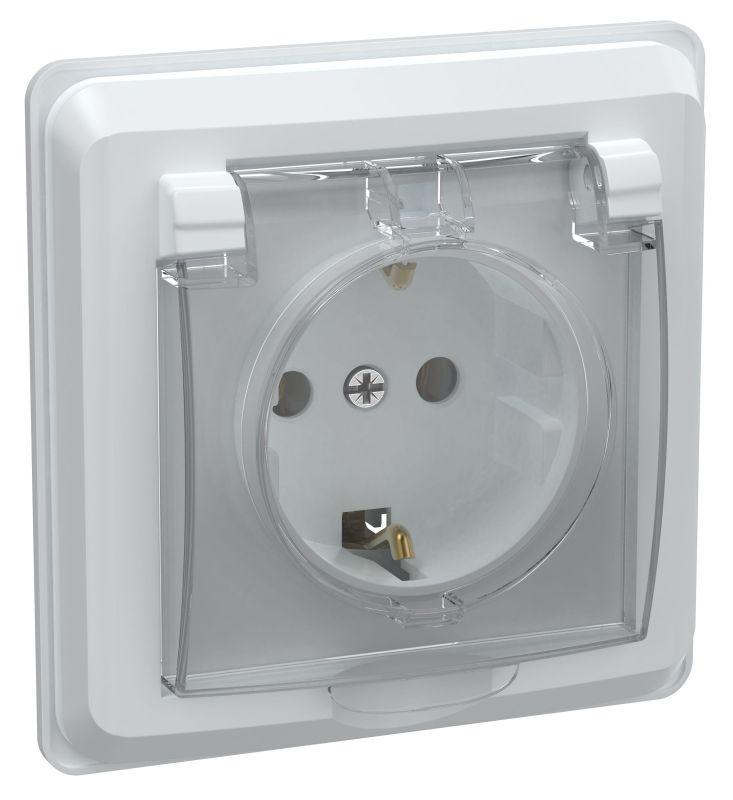 Розетка 2-м ОП Хит 16А IP20 с заземл. защ. шторки бел. SE RA16-239-B