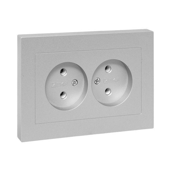 Розетка 2-м СП Эпика 16А без заземл. без защ. шторок с рамкой механизм алюм. EKF UP1-SOA-200