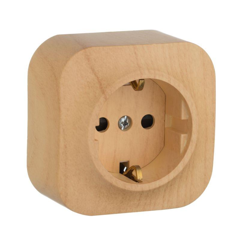 Розетка 1-м ОП Quteo 16А IP20 250В 2P+E с заземл. защ. шторки дерево IEK 782280
