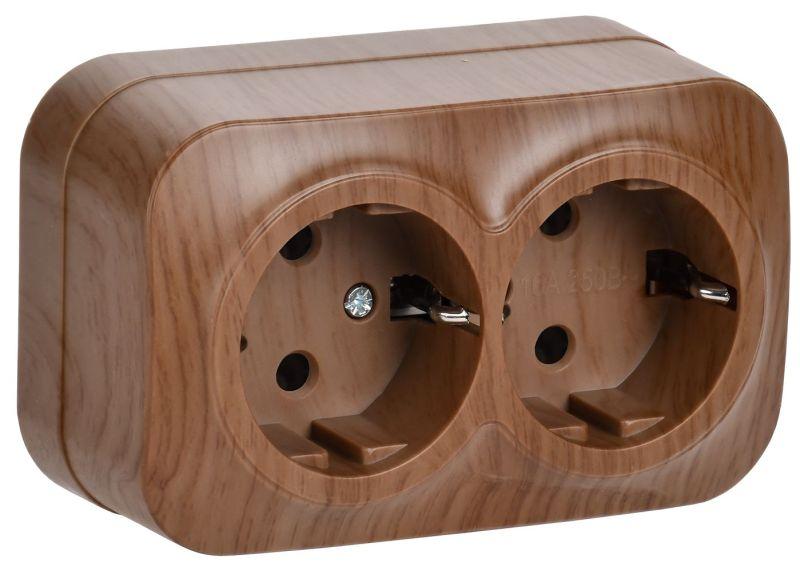 Розетка 2-м ОП GLORY РС22-3-ХД 16А с заземл. дуб IEK ERH21-K24-16
