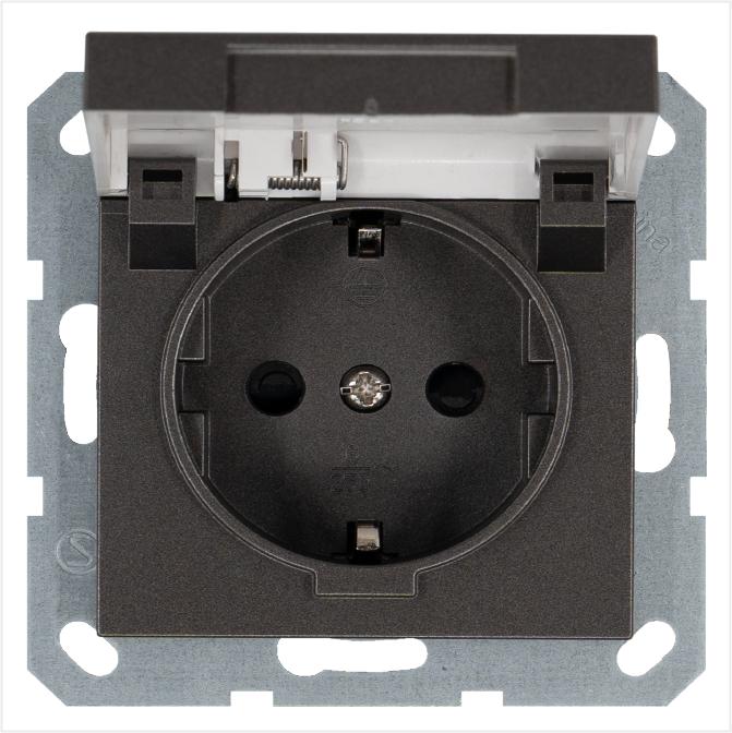 Розетка 1-м СП Афина 16А IP20 с заземл. с крышкой в сборе графит Universal A0029-Gr