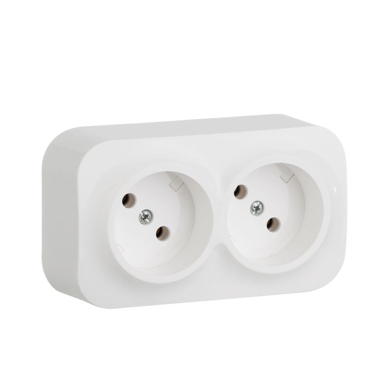 Розетка 2-м ОП Quteo 16А IP20 250В 2х2P без заземл. без защ. шторок бел. IEK 782231