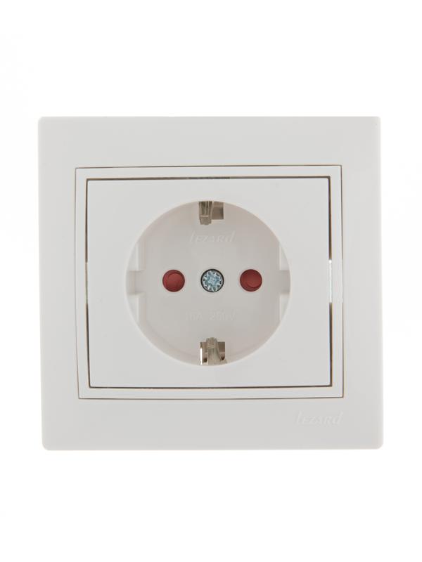 Розетка 1-м СП Mira 16А IP20 с заземл. защ. шторки с бел. вставкой керамика бел. LEZARD 701-0202-124