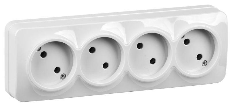 Розетка 4-м ОП GLORY РС24-2-ХБ 10А без заземл. бел. IEK ERH40-K01-10