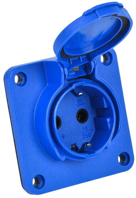 Розетка панельная MAGNUM 2P+PE 16А IP54 РП12-3 с защ. крышкой с заземл. син. IEK PSN71-016-3-2-54-K07