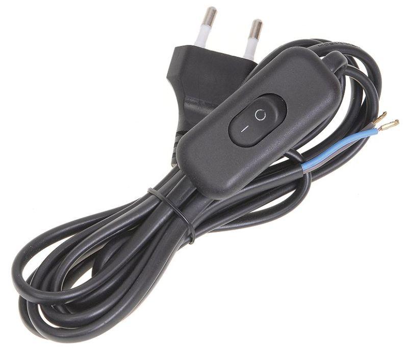 Шнур для бра УШ-1КВ 2м с опрес. вилкой и выключателем 2х0.75 черн. IEK WUP20-02-K02