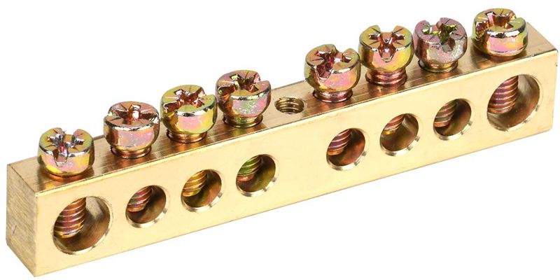Шина PEN "земля-ноль" 8х12мм 8/1 (8групп/крепеж по центру) IEK YNN20-08-100