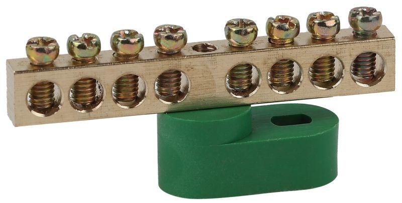Шина PE "земля" на одном угловом изоляторе ШНИ-6х9-8-У1 зел. NO-222-103-1 ЭРА Б0044152