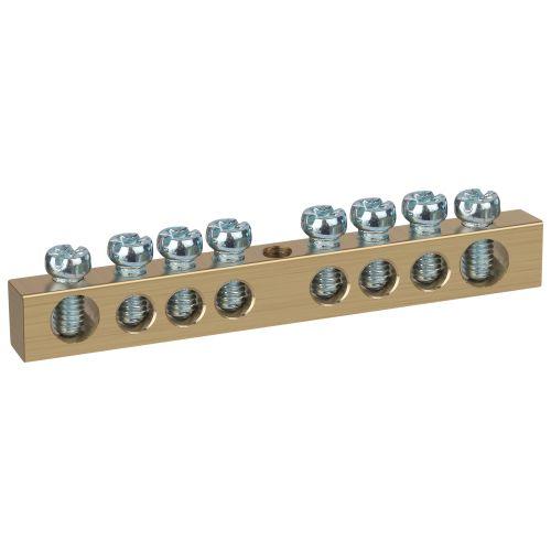 Шина PE "земля" на DIN-изоляторе 8х12мм 10 отвер. латунь TOKOV ELECTRIC TKE-BCB-812-10-DIN/PE