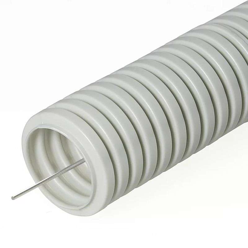 Труба гофрированная ПВХ d20мм с протяжкой сер. (уп.25м) TOKOV ELECTRIC TKE-TG/P-20-C06/25