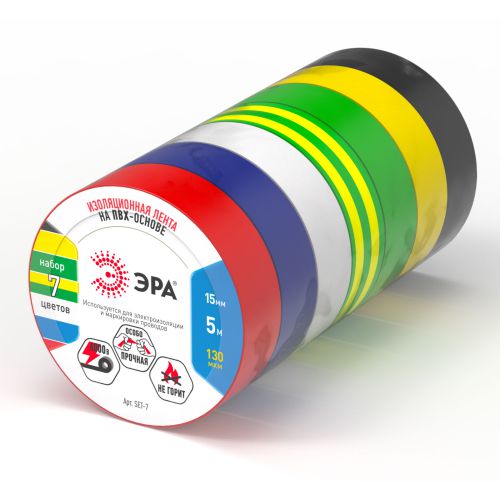 Набор изолент ПВХ 15ммх5м цветная SET-7 (уп.7шт) Эра Б0062937