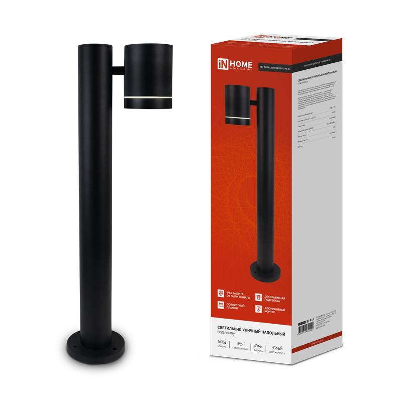 Светильник НБУ P600R-ЦИЛИНДР-1GX53-NL-BL IP65 600мм уличный напольн. под лампу GX53 алюм. черн. IN HOME 4690612052922