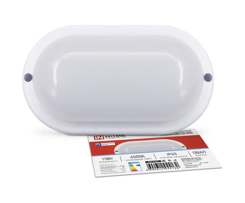 Светильник светодиодный СПП МД-1565-ОВАЛ 15Вт 6500К IP65 1350лм 160х88мм герметичный с микроволновым датчиком IN HOME 4690612044132