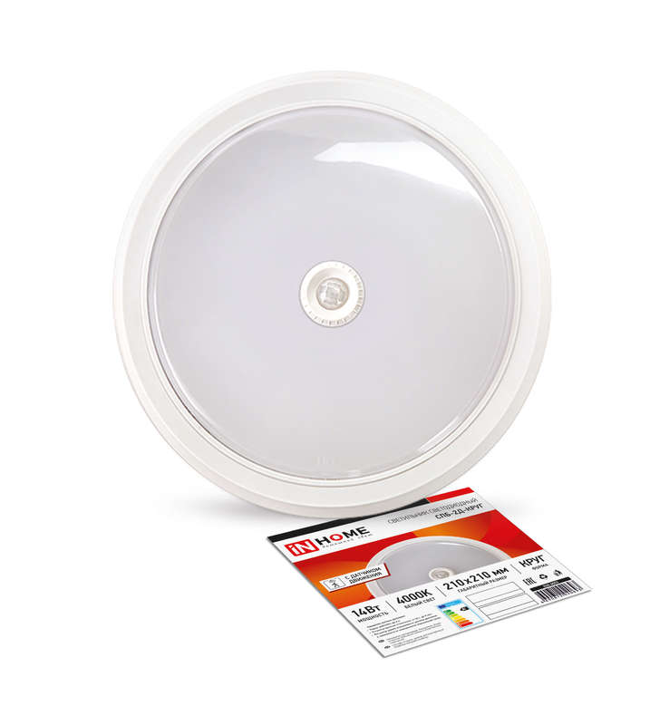 Светильник светодиодный СПБ-2Д-КРУГ 14Вт 4000К 1100лм 230В 210мм с датчиком бел. IN HOME 4690612020693