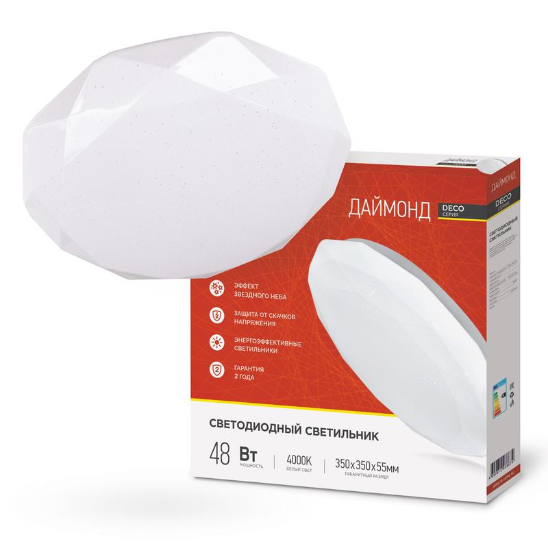Светильник светодиодный DECO ДАЙМОНД 48Вт 4000К 4320лм 230В 380х55мм IN HOME 4690612038674