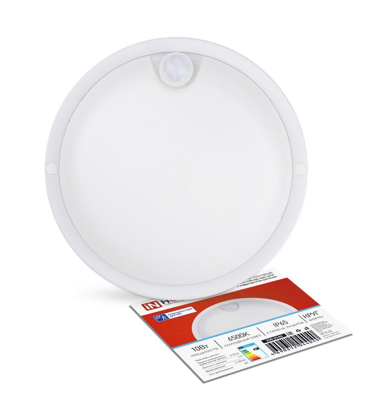 Светильник светодиодный СПП ИД-1065-КРУГ 10Вт 6500К IP65 900лм 140мм герметичный с инфракрасным датчиком IN HOME 4690612044040