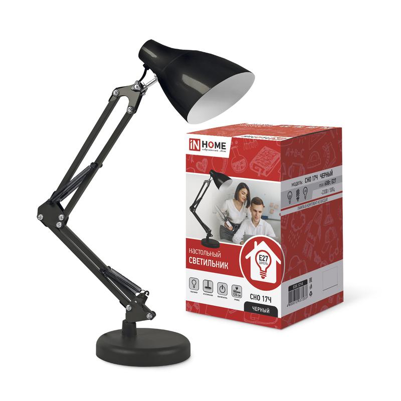Светильник настольный СНО 17Ч 60Вт E27 230В под лампу на основании черн. (кор.) IN HOME 4690612037233