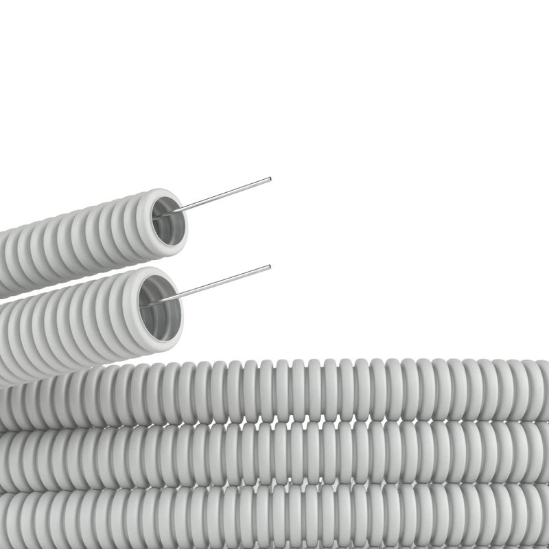 Труба гофрированная ПВХ гибкая тяжелая d25мм с протяжкой сер. (уп.50м) DKC 91525