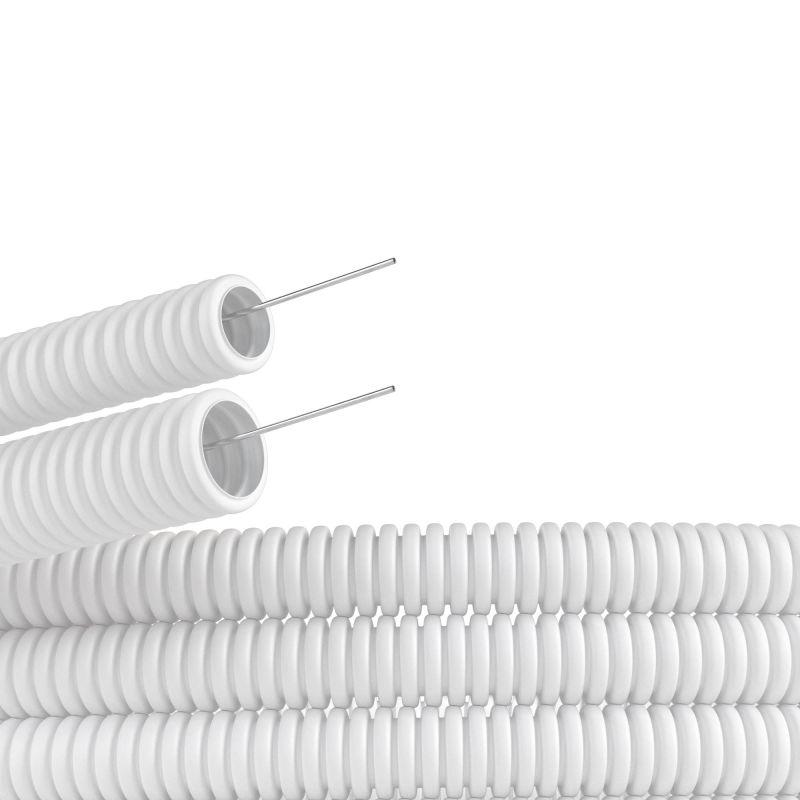 Труба гофрированная ПЛЛ гибкая d25мм с протяжкой безгалоген. (HF) ПВ-0 бел. (уп.50м) DKC 81825