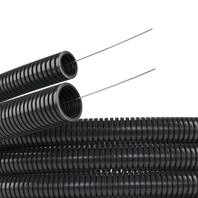 Труба гофрированная ПА 6 d17мм dвнутр.16.8мм dвнешн.21.2мм с протяжкой ПВ-2 черн. (уп.50м) DKC PA611721F2