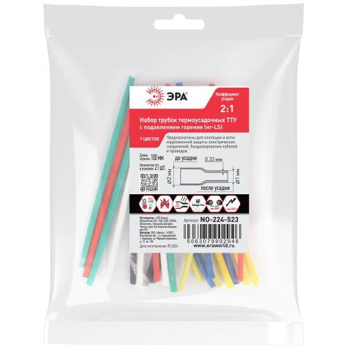 Набор трубок термоусадочных ТТУ нг-LS 2/1 (7 цветов по 3шт 100мм) Эра Б0067633