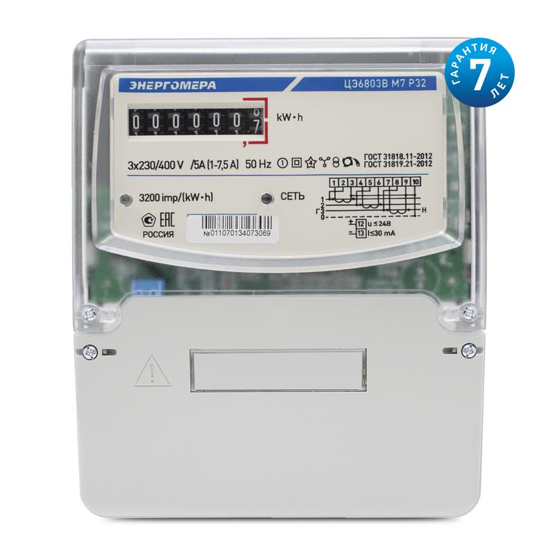 Счетчик ЦЭ6803В 3ф 1-7.5А класс точн. 1.0 1 тариф. универс. крепл. 230В 1 4 пров. М7Р32 Энергомера 101003001011321