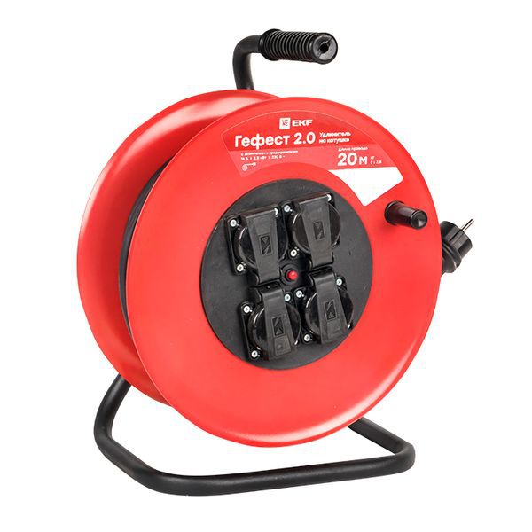 Удлинитель на катушке 4х20м с заземл. 16А IP44 Гефест 2.0 3.5кВт КГ 3х2.5 с предохранителем PROxima EKF UKG02-16-R325-4-20-IP44
