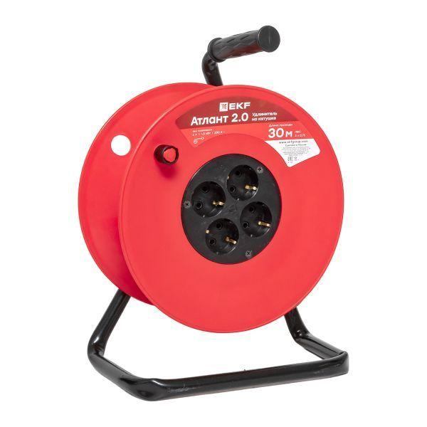 Удлинитель на катушке 4х30м без заземл. 6А IP20 Атлант 2.0 1.3кВт ПВС 2х0.75 PROxima EKF UKA02-06-275-4-30