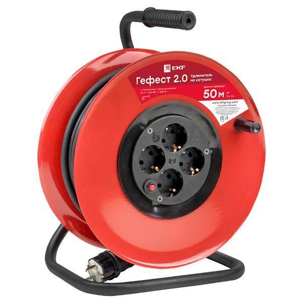 Удлинитель на катушке 4х50м с заземл. 16А IP20 Гефест 2.0 3.5кВт КГ 3х1.5 с предохранителем PROxima EKF UKG02-16-R315-4-50
