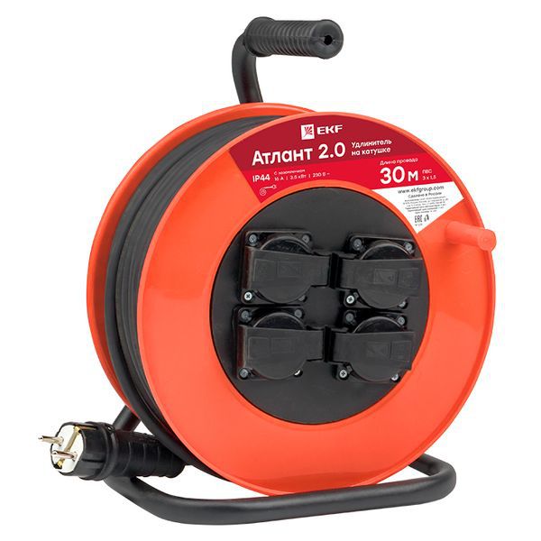 Удлинитель на катушке 4х30м с заземл. 16А IP44 Атлант 2.0 3.5кВт ПВС 3х1.5 PROxima EKF UKA02-16-315-4-30-IP44