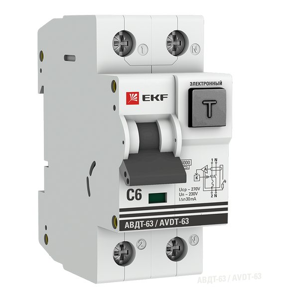 Выключатель автоматический дифференциального тока C 6А 30мА тип А 6кА АВДТ-63 (электрон.) PROxima EKF DA63-6-30e