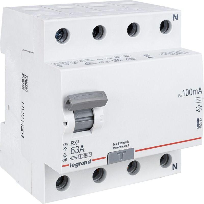 Выключатель дифференциального тока (УЗО) 4п 63А 100мА тип AC RX3 ИЭК Leg 402068
