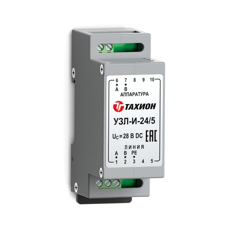 Устройство защиты интерфейсов с подачей питания и обеспечивает передачу питания 24В DC по сигнальным парам 5А УЗЛ-И-24/5 Тахион 20136