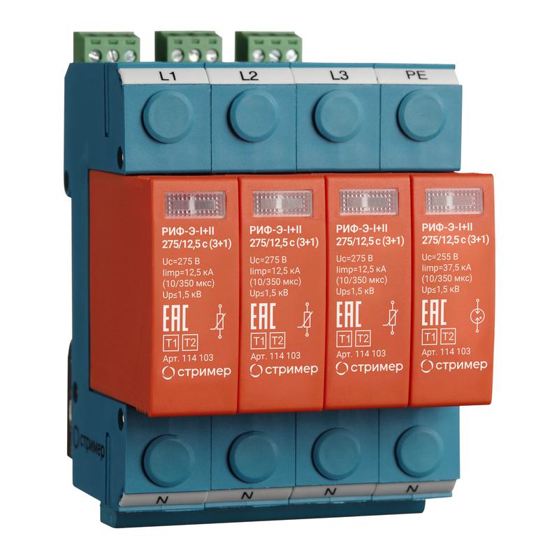 Устройство защиты от импульсных перенапряжений РИФ-Э-I+II 275/12.5 c (3+1) Стример 114103