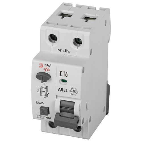 Выключатель автоматический дифференциального тока 2п (1P+N) C 16А 30мА тип A 6кА АД-32 электрон. PRO D326E2C16A30 Эра Б0059195