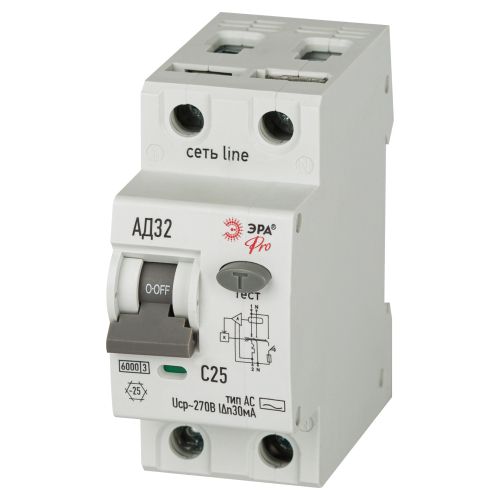 Выключатель автоматический дифференциального тока 2п (1P+N) C 25А 30мА тип A 6кА АД-32 электрон. PRO D326E2C25A30 Эра Б0059198