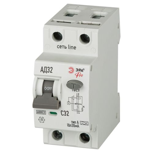 Выключатель автоматический дифференциального тока 2п (1P+N) C 32А 30мА тип А 6кА АД-32 электрон. PRO D326E2C32А30 Эра Б0059065