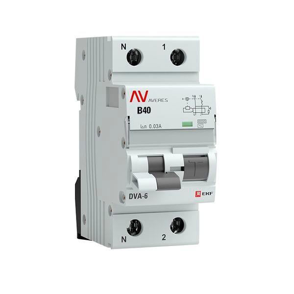 Выключатель автоматический дифференциального тока 2п (1P+N) C 40А 30мА тип AC 6кА DVA-6 Averes EKF rcbo6-1pn-40C-30-ac-av