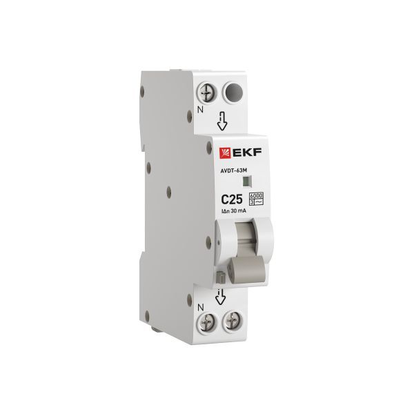 Выключатель автоматический дифференциального тока 1мод. C 25А 30мА тип AC 6кА АВДТ-63М электрон. PROxima EKF DA63M-25-30