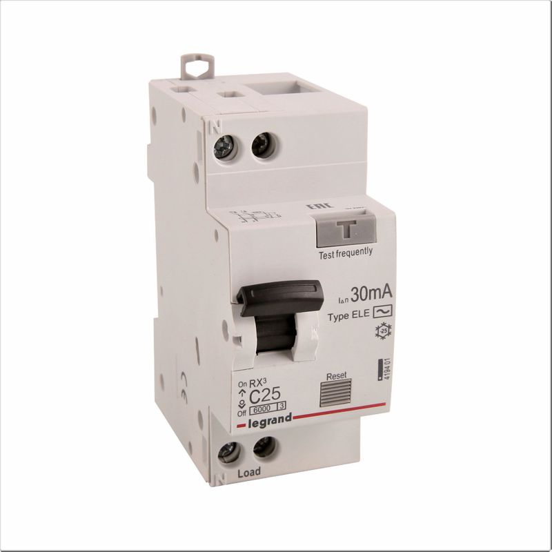 Выключатель автоматический дифференциального тока 2п (1P+N) C 25А 30мА тип AC 6кА RX3 ИЭК Leg 419401