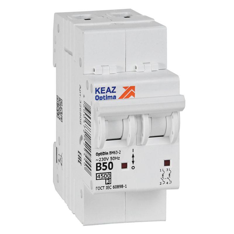 Выключатель автоматический модульный 2п B 50А 4.5кА OptiDin BM63-2B50-4.5-УХЛ3 КЭАЗ 329515