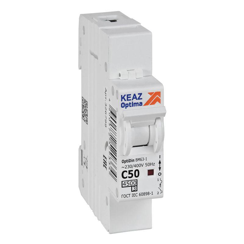 Выключатель автоматический модульный 1п C 50А 4.5кА OptiDin BM63-1C50-4.5-УХЛ3 КЭАЗ 326799