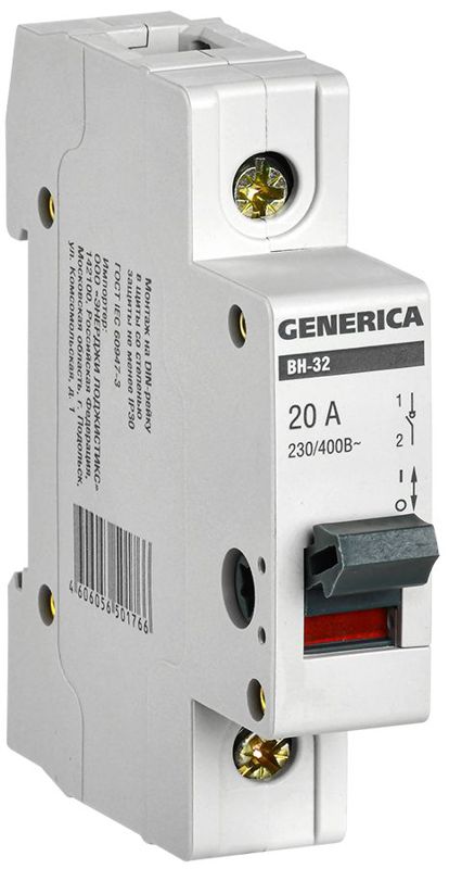 Выключатель нагрузки (мини-рубильник) 1п 20А ВН-32 GENERICA MNV15-1-020
